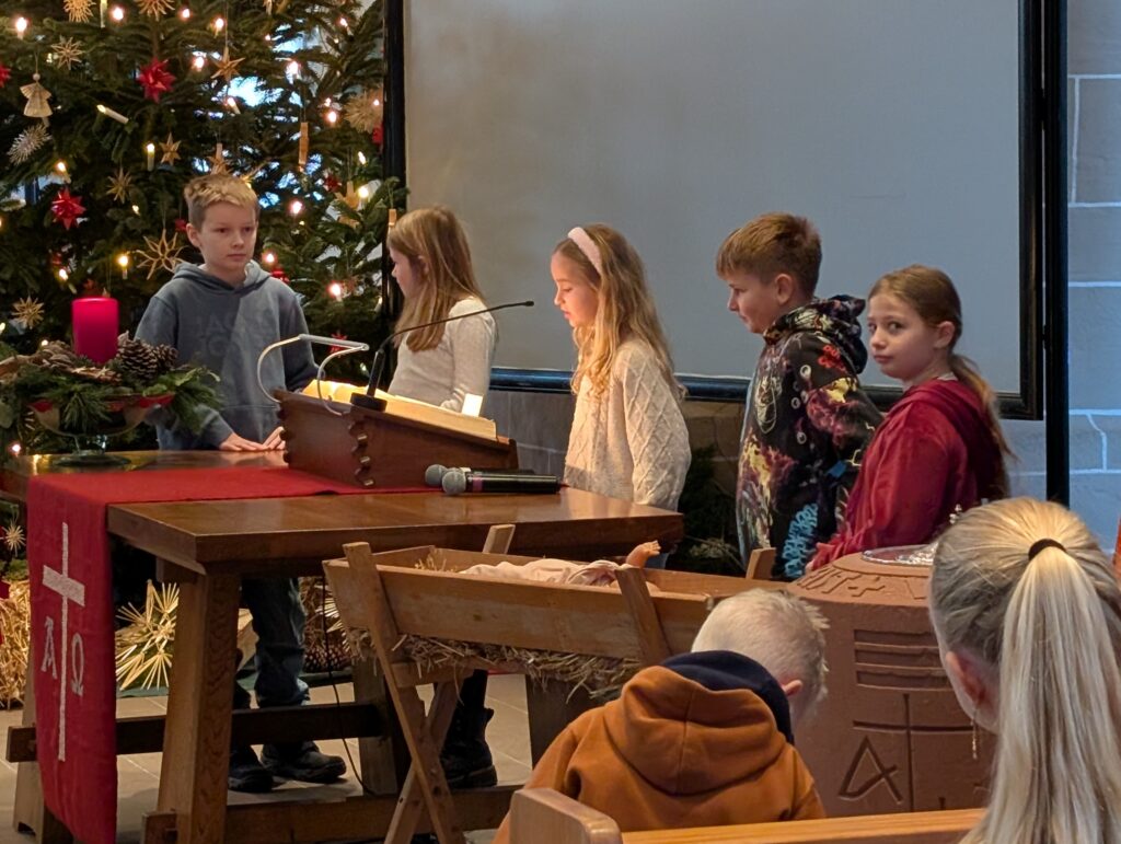 „Am 20.12.2024 hatten wir unseren jährlichen Weihnachtsgottesdienst, alle Kinder waren da. Die dritten und die vierten Klassen haben gemeinsam etwas aufgeführt. Das war toll. Gemeinsam haben wir gesungen und Herr Fortmann begleitete am Klavier, Frau Hüttemeier an der Geige. Der Pastor hielt eine spannende Predigt. Es war ein toller Gottesdienst.“