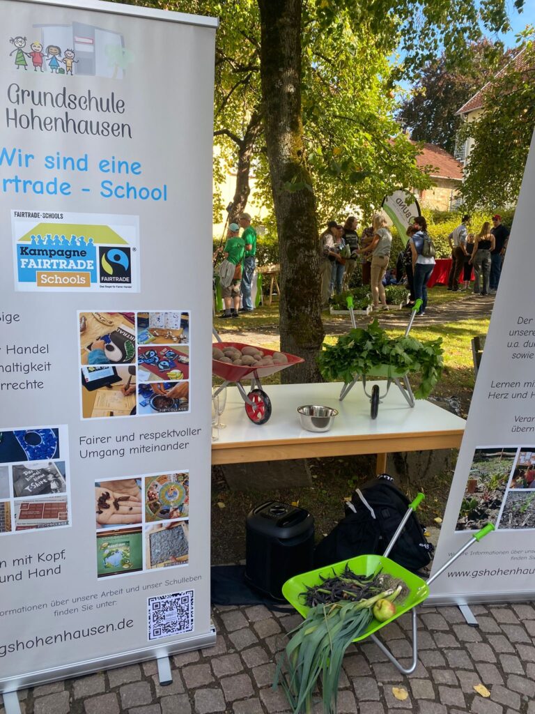 „Am Freitag den 19.09.2025 stand alles unter Motto „Nachhaltigkeit“. Unser alljähriger Markt in Hohenhausen. Es wurden regionale Produkte verkauft und es gab Angebote zu fairen Preisen. Die Grundschule Hohenhausen präsentierte ihren eigenen Fairtrade-Song. Viele Kinder von der Grundschule Hohenhausen gestalteten den Song mit. Es gab viele verschiedene Stände. Zum Beispiel einen Honigstand. Dort konnte man Honig probieren. Es gab auch einen Stand mit Äpfeln. Jeder Stand war für sich besonders. Außerdem gab es Stände, bei denen man sich Pflanzen für zu Hause mitnehmen konnte. Besonders cool war der Stand mit dem Glücksrad. Dort gab es verschiedene Preise. Auch ein Insektenhotel konnte gebaut werden. Es gab einfach tolle Angebote.“