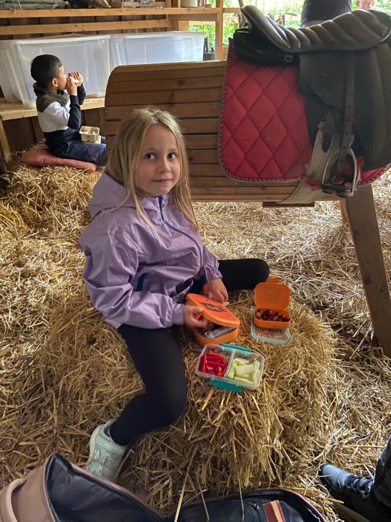 Während des Aufenthalts auf dem Bauernhof nehmen die Kinder aktiv am Hofleben teil. Sie füttern Tiere, helfen beim Säubern der Ställe, lernen verschiedene Nutztiere kennen und erhalten Einblicke in deren Haltung. Auch der Gemüseanbau wird thematisiert: Die Kinder säen, pflanzen oder ernten – je nach Jahreszeit – verschiedene Gemüsesorten und lernen dabei, wie Lebensmittel entstehen und welchen Weg sie bis zum Verbraucher zurücklegen.