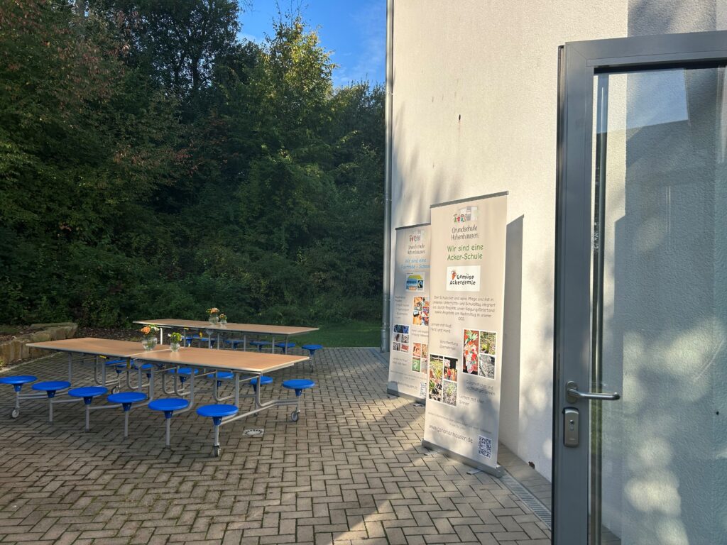 „Der Tag der offenen Tür war dieses Jahr am Samstag, den 20.09.2025 . Alle Klassen bereiteten ein Angebot vor. Bei der Klasse 4a konnte man in der Klasse Englisch lernen. Bei der 4b konnte man Murmelbahnen bauen und bei der 4c konnte Butter hergestellt werden. Auch alle anderen Klassen haben etwas beigetragen und es gab tolle Angebote. Draußen gab es auch verschiedene Köstlichkeiten. Ein Highlight war der Verkauf von Smoothies am Acker. Es gab auch eine Hüpfburg, die kam bei allen Kindern gut an. Es kamen auch viele Besucher, die die Angebote ausprobieren konnten. Die Kinder halfen den Besuchern bei den Angeboten und betreuten sie. Für die neuen Erstklässler gab es auch Schnupperunterricht. Es hatten alle gute Laune.“