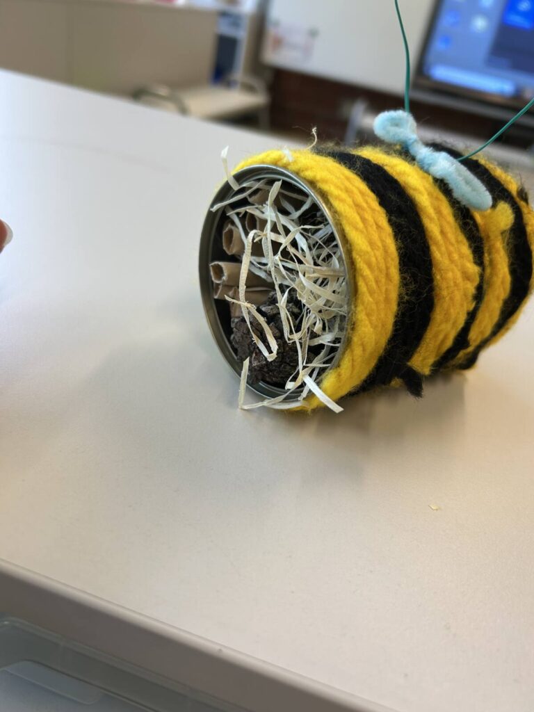 Die Klasse 1a der Grundschule Hohenhausen hatte sich in den vergangenen Wochen intensiv mit dem Thema „Müll, Mülltrennung und Recycling“ beschäftigt. Im Rahmen des Unterrichts lernten die Schülerinnen und Schüler, welche Abfälle in welche Mülltonne gehören, wie man richtig trennt und warum das wichtig für unsere Umwelt ist.Mit großem Interesse und viel Engagement eigneten sich die Kinder ein breites Wissen rund um das Thema Müllvermeidung und Ressourcenschonung an.Ein besonderes Highlight bildete die Müllsammelaktion rund um das Schulgelände (siehe Beitrag im Blog). Ausgestattet mit Handschuhen und Müllsäcken machten sich die Kinder auf den Weg, um ihre Umgebung von achtlos weggeworfenem Müll zu befreien. Die Aktion war ein voller Erfolg und wurde von der Klasse mit großer Begeisterung aufgenommen. Als Belohnung für ihren Einsatz erhielten die Kinder eine faire Banane.Im Rahmen eines Projekttages arbeiteten die Kinder der Klasse abschließend zum Thema „Recycling“ und bastelten Insektenhotels aus alten Konservendosen. Diese wurden liebevoll im Bienenlook gestaltet – passend zur “Bienenklasse”. So entstand nicht nur ein nützliches Zuhause für Wildbienen und andere Insekten, sondern auch ein nachhaltiges Kunstwerk, das den Garten verschönert und gleichzeitig zur Artenvielfalt beiträgt.